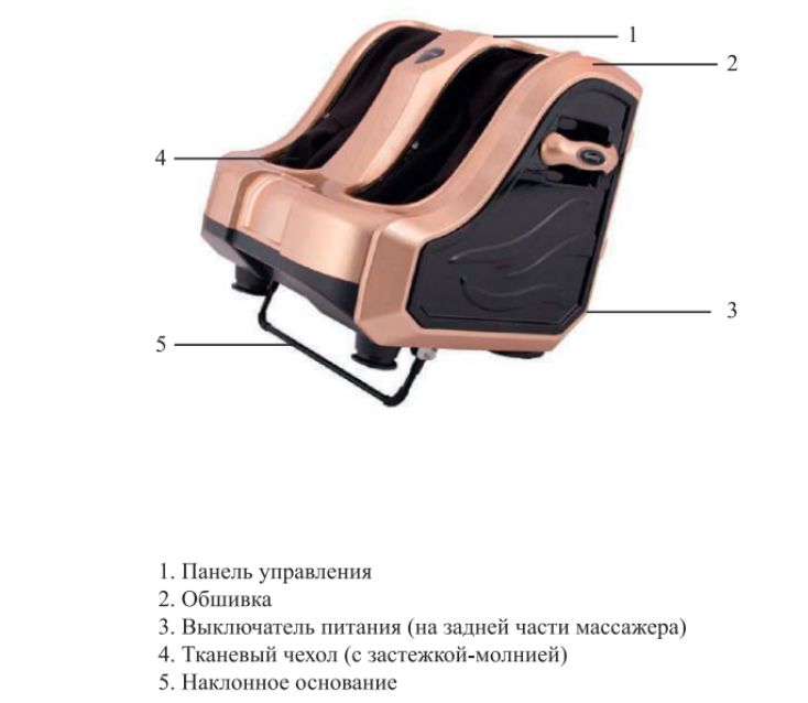 Массажер имеет две независимые камеры, которые оказывают давление на все части стопы (лодыжки, предплюсну, пальцы ног, своды и пятки), тем самым снимая напряжение в глубоких слоях мышц и стимулируя кровообращение.