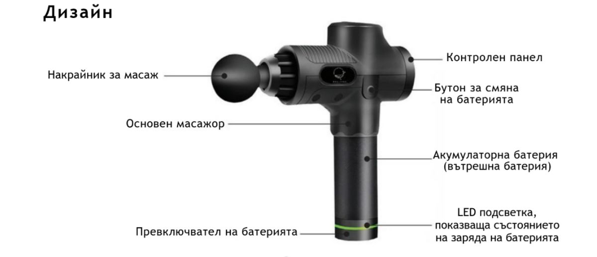 Открийте нашия преносим безжичен ръчен масажор. Комплектът включва 6 различни накрайника, за да можете да достигнете по-лесно до труднодостъпните мускули. Предварително програмираните 30 режима на скорост ще отговорят на всяко изискване. Отпуснете се и релаксирайте навсякъде, независимо дали имате нужда да облекчите напрежението след дълъг работен ден или да се отпуснете след интензивна тренировка.