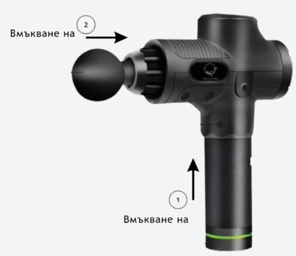 2. За да инсталирате масажната глава, изключете устройството, подравнете изпъкналата част на главата с отвора на устройството за ръчен масаж, поставете бавно и се уверете, че всичко е здраво фиксирано.