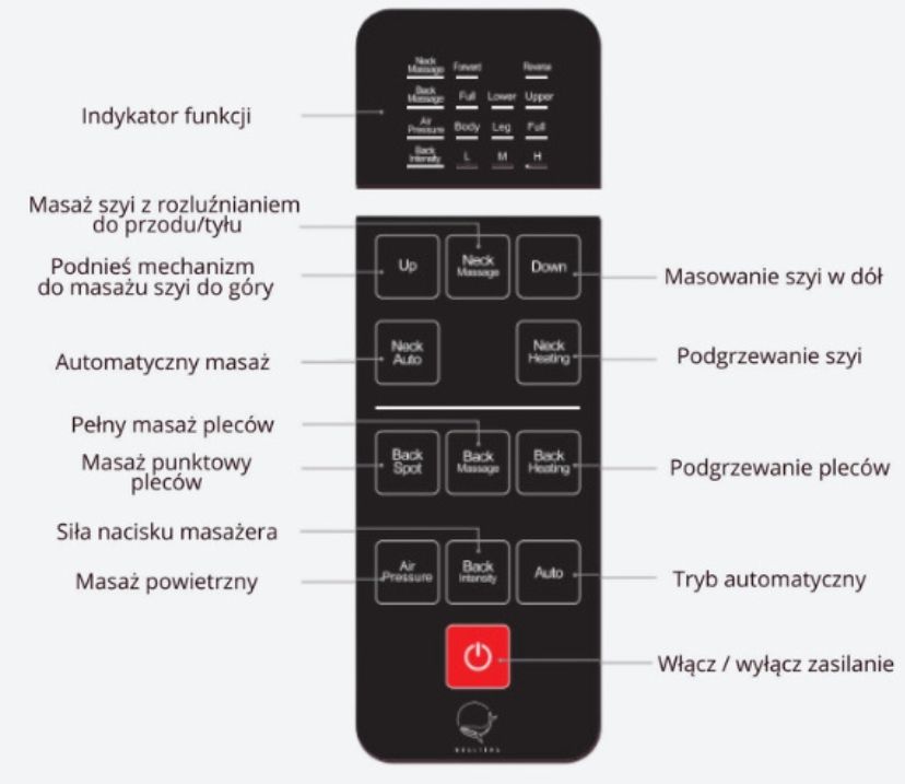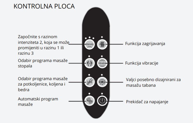 Za vašu udobnost u uređaj je ugrađena intuitivna kontrolna ploča. Ovo rješenje osigurava jednostavno korištenje uređaja i podešavanje intenziteta masaže bez ikakvog napora.