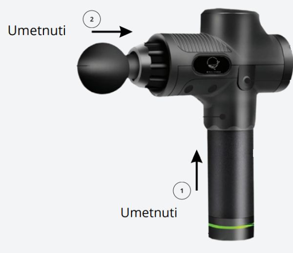 2. Za montažu nastavake za masažer, isključite uređaj, umetnite polako i provjerite je li sve dobro fiksirano.