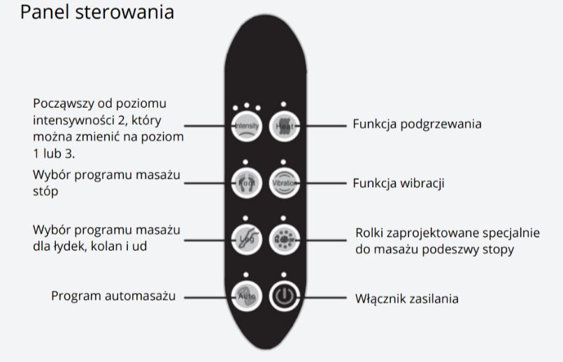 Intuicyjny panel sterowania został wbudowany w urządzenia dla Twojej wygody. Takie rozwiązanie zapewnia proste użytkowanie urządzenia i regulowanie ustawień intensywności masażu bez żadnego wysiłku.