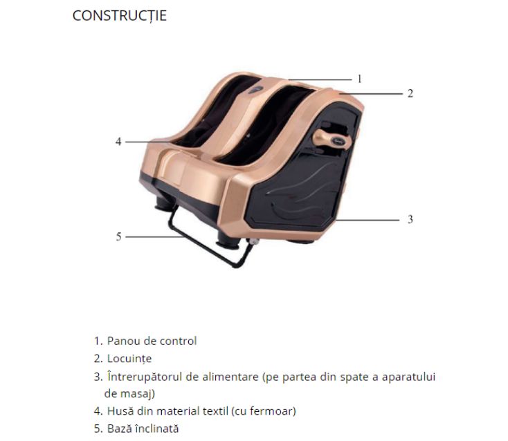 Aparatul de masaj are două camere independente care aplică presiune pe toate părțile piciorului (glezne, călcâi, degete, arcade și călcâie), eliberând astfel tensiunea din straturile profunde ale mușchilor și stimulând în același timp circulația sângelui.