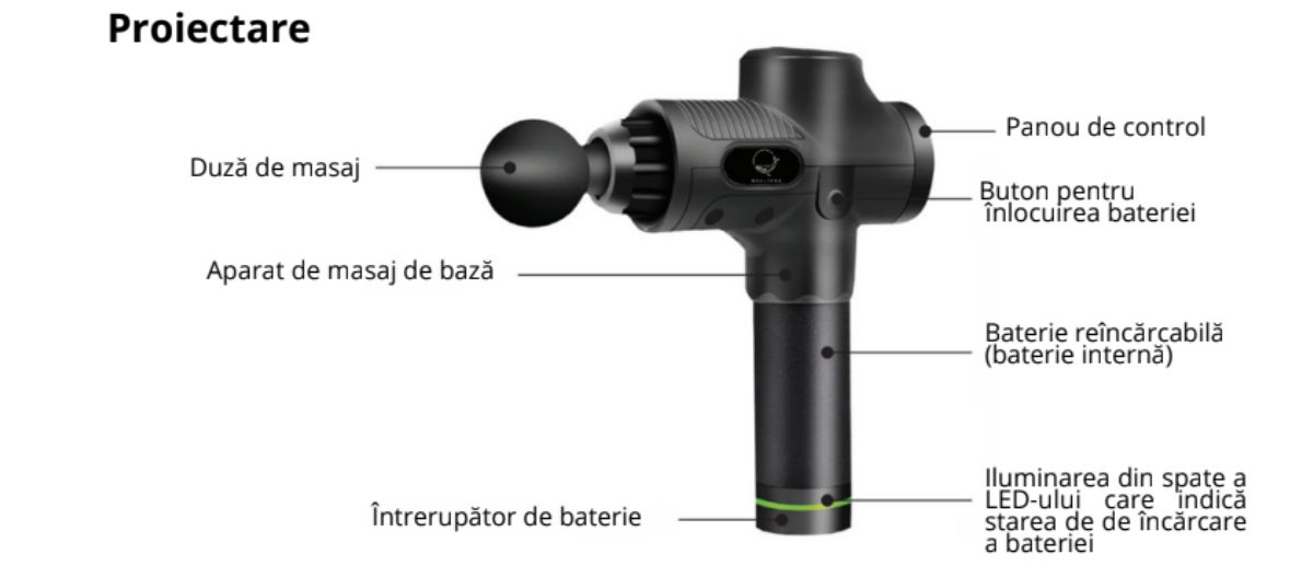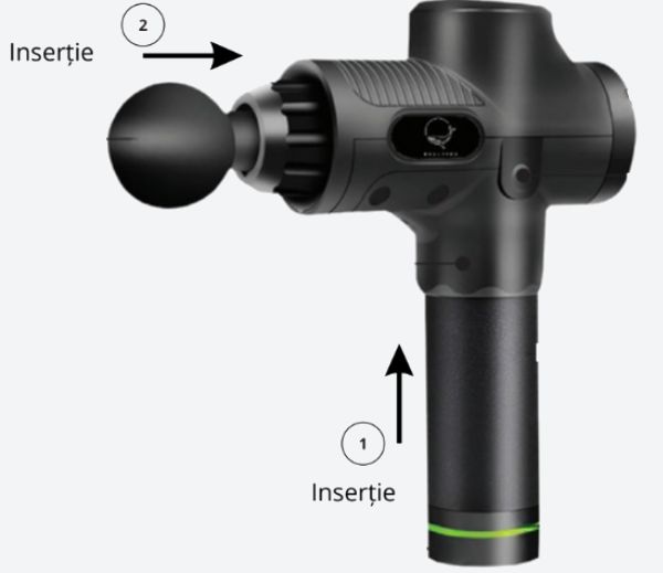 2. Pentru a instala capul de masaj, opriți dispozitivul, aliniați partea convexă a capului cu orificiul dispozitivului de masaj manual, introduceți încet și asigurați-vă că totul este bine fixat.
