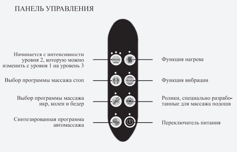 Для вашего удобства в приборы встроена интуитивно понятная панель управления. Это решение обеспечивает простое использование устройства и регулировку настроек интенсивности массажа без каких-либо усилий.